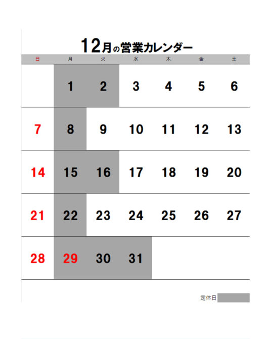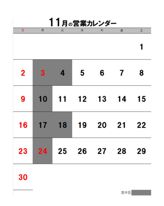 日頃は、MINI 豊橋ををご愛顧いただき誠にありがとうございます。111月・12月の営業日については以下とさせていただきます。